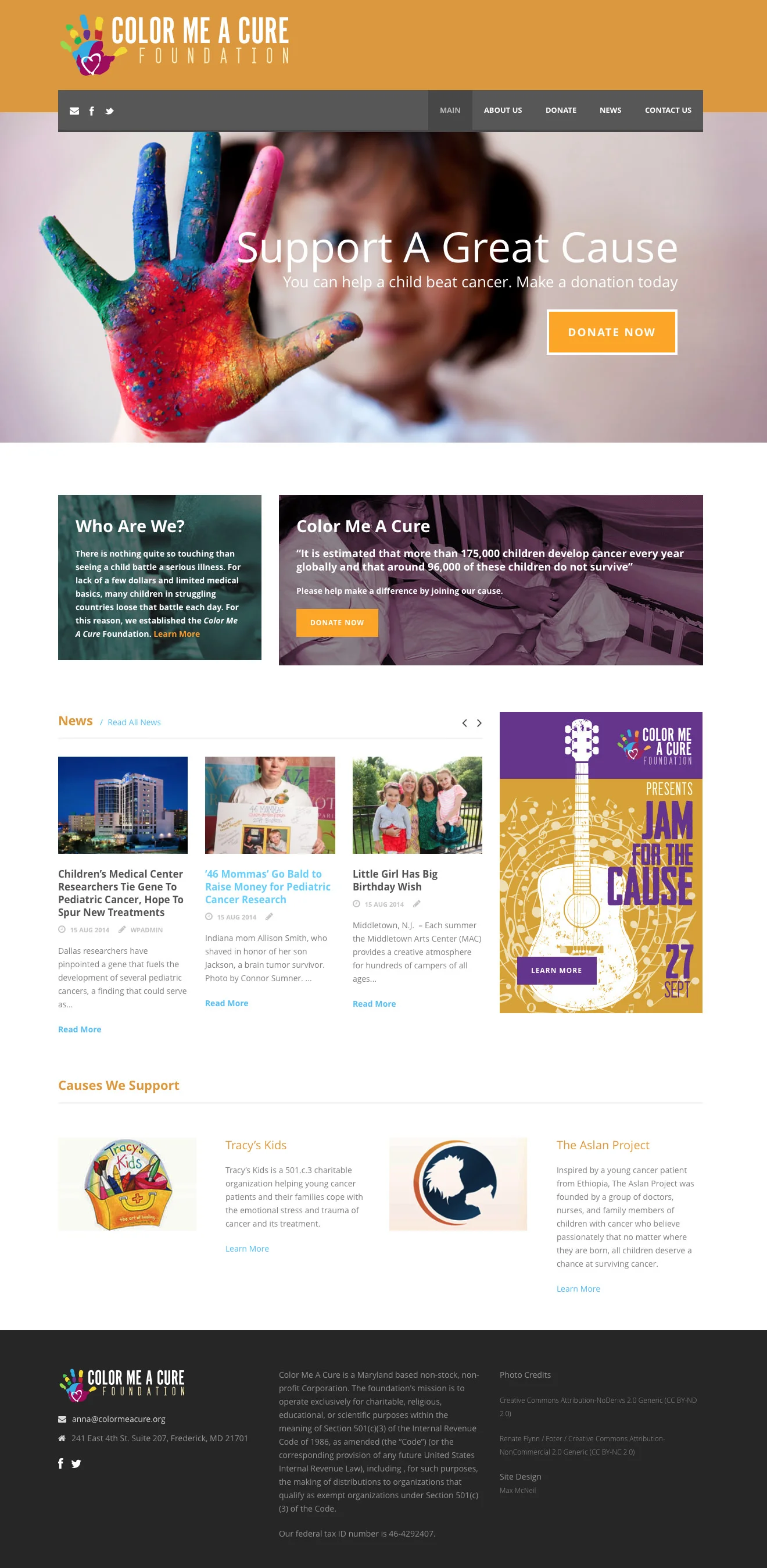 Color Me a Cure is a Maryland based non-profit Corporation. The foundation's mission is to improve the patient treatment experience and survivability outcomes in the field of pediatric oncology. Their focus is on pediatric art therapy and on pediatric oncology programs in underdeveloped and developing countries.