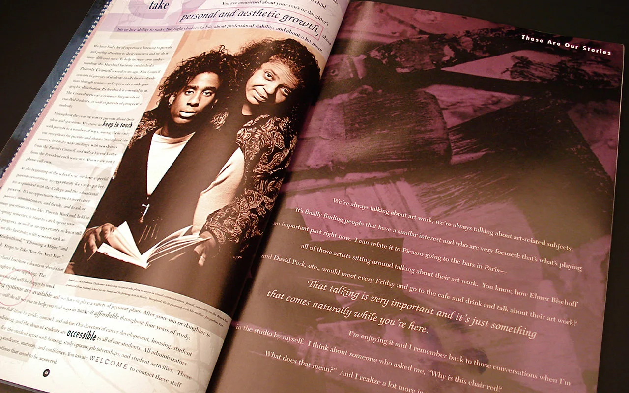 The Maryland Institute, College of Art (MICA) is the oldest independent, degree-granting, fully-accredited art college in the nation. I have a long standing relationship working with MICA on a wide variety of marketing and multimedia projects for the school including undergraduate and graduate catalogs, recruitment “search campaigns”, websites, posters, and CDs. Each project must appeal and communicate effectively to a variety of different audiences simultaneously including parents, educators, and high school students.