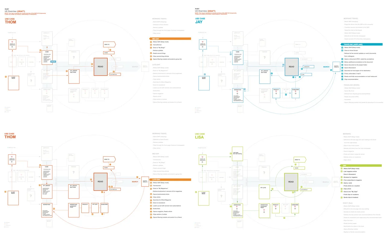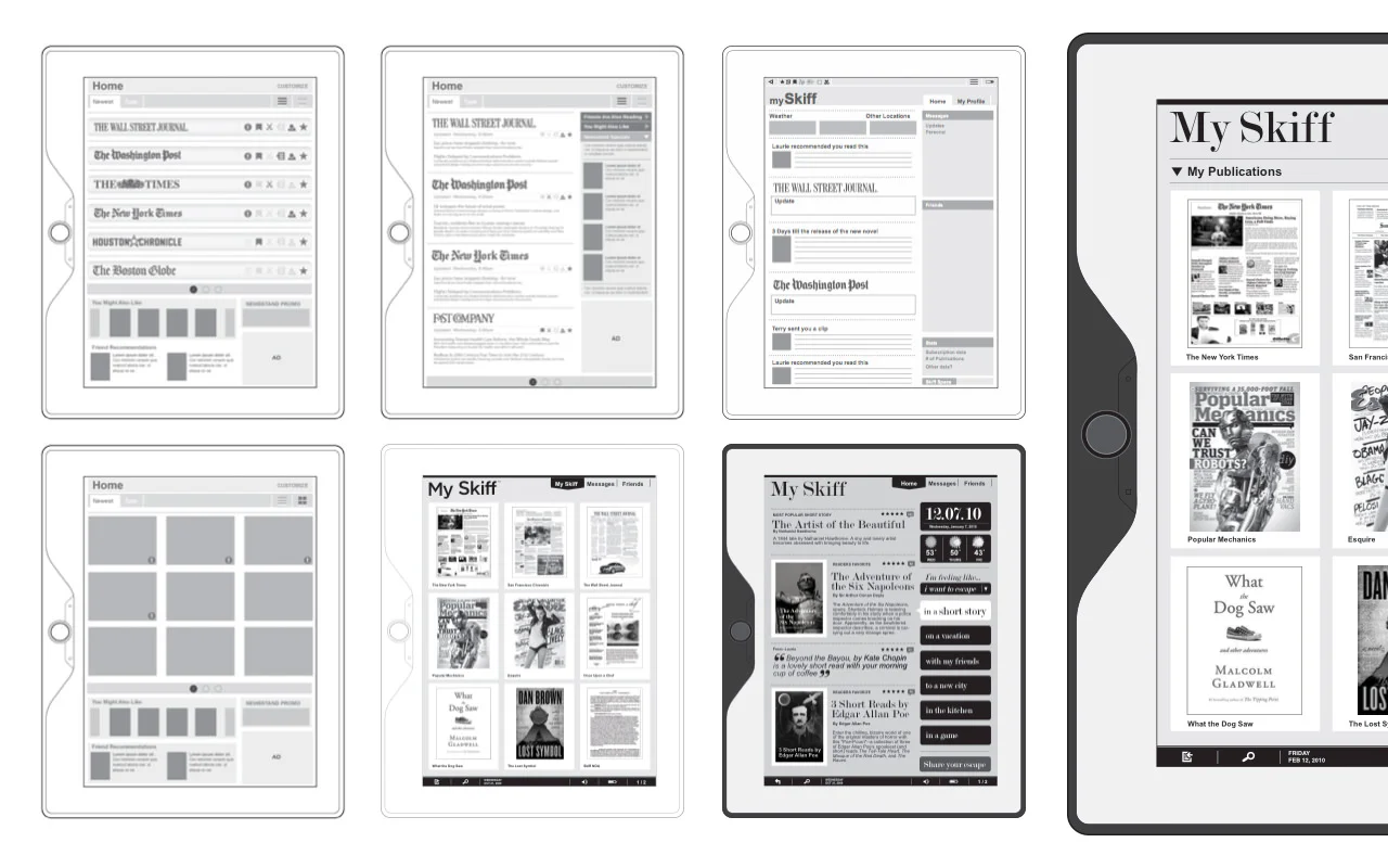 Functioning as the Design Director for a small team of designers in Skiff’s New York City offices, I spent 16 months engaged with Hearst Publishing working on Skiff, their large format digital E-ink reader. I worked on everything from product definition, proof of concepts, product requirements, user experience to the final design. Extensive in-home user behavioral studies and personas were used to guide the product development as it evolved from a technical proof of concept into a rich and engaging experience that was deeply integrated with their hardware design, yet sensitive to the constraints of other mobile platforms.